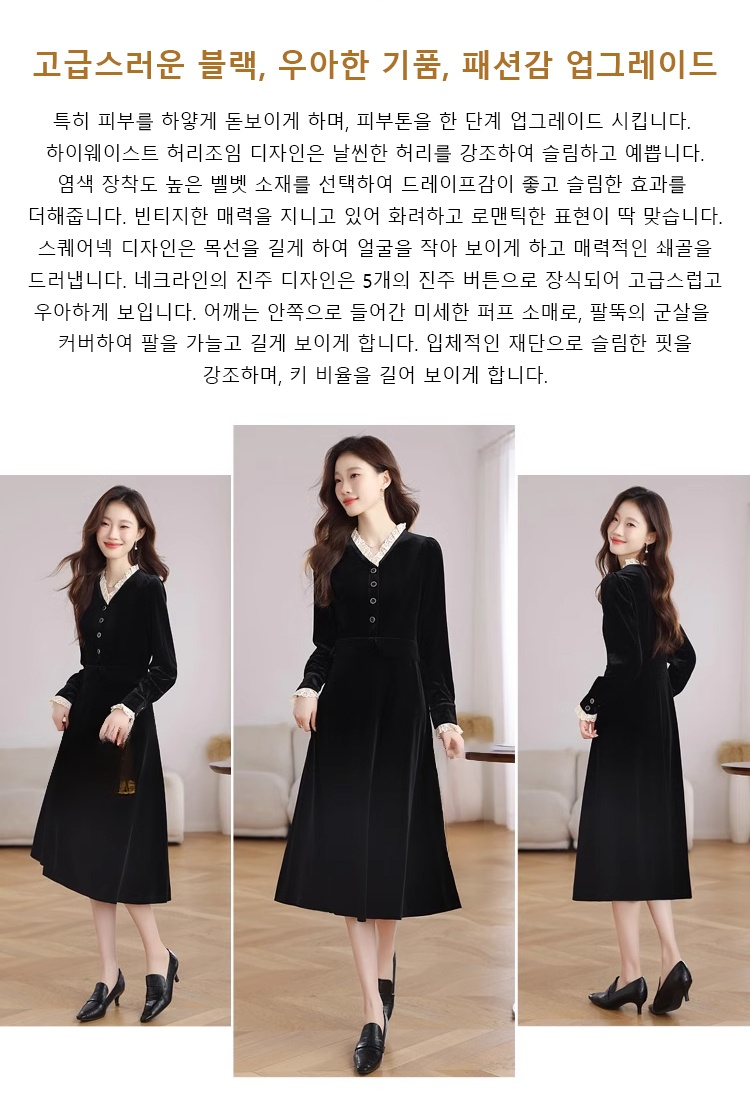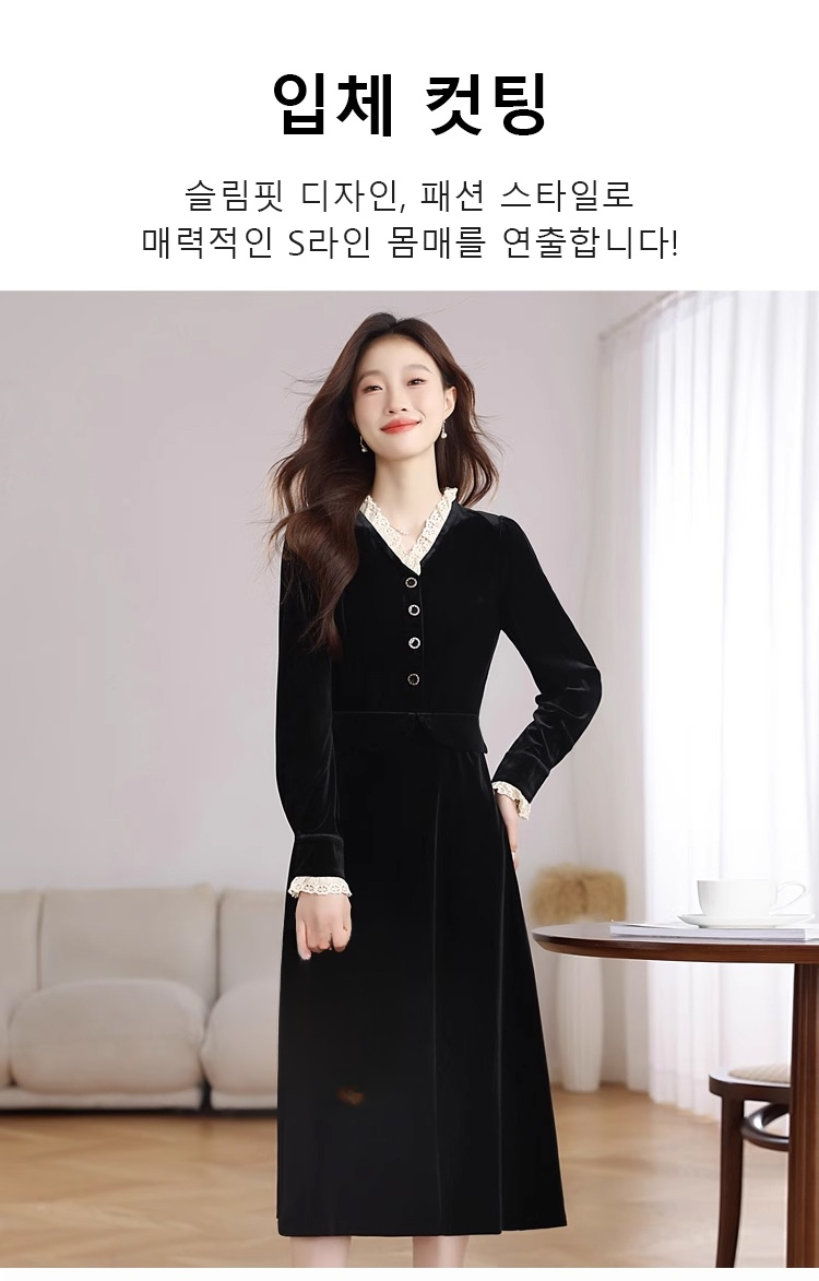 여성용 프렌치 벨벳 원피스